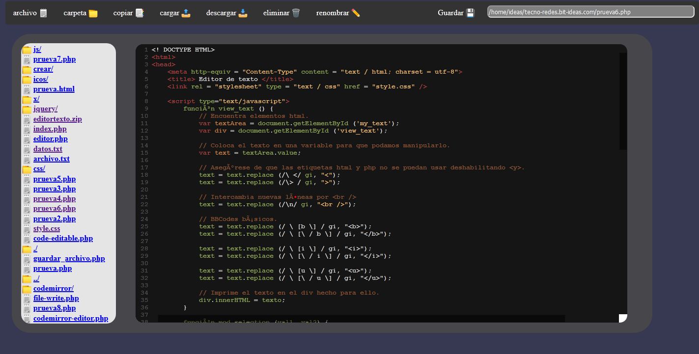 Editor de Texto plano que soporta diferentes lenguajes de programacion, este curioso editor de texto esta netamente desarrollado en el conocido lenguaje de programacion PHP y una libreria tambien opensource codemirrow, Echale una mirada para guiarte en proyectos similares.